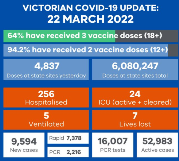 Victoria recorded 9,594 new COVID cases and seven deaths: