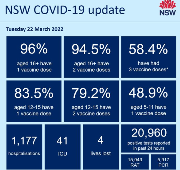 NSW recorded 20,960 new COVID cases and four deaths:
