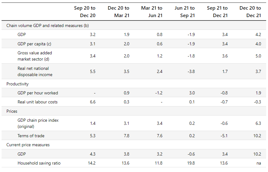 The Australian Bureau of Statistics (ABS) has released the country’s national accounts for the December quarter, with real GDP rising 3.4% over the quarter to be 4.2% higher year-on-year: