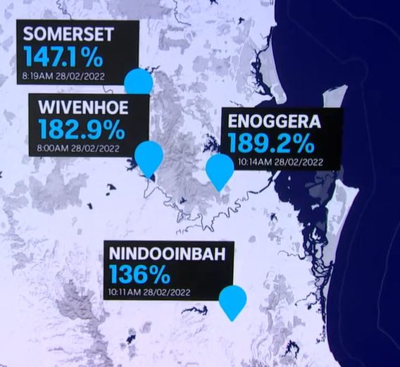 The next graphic shows the dam storage levels servicing Brisbane, which are well above 100% capacity:
