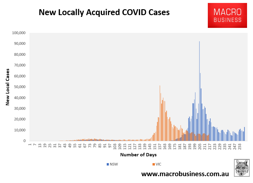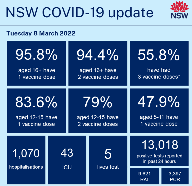 NSW recorded another 13,018 new COVID cases and five deaths: