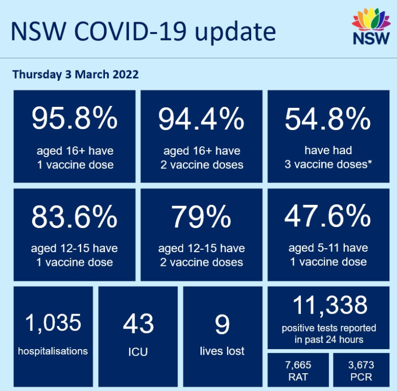NSW recorded 11,338 new COVID cases over the past 24 hours alongside 9 deaths:
