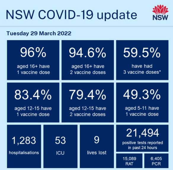 NSW has recorded another 21,484 new COVID cases and nine deaths:
