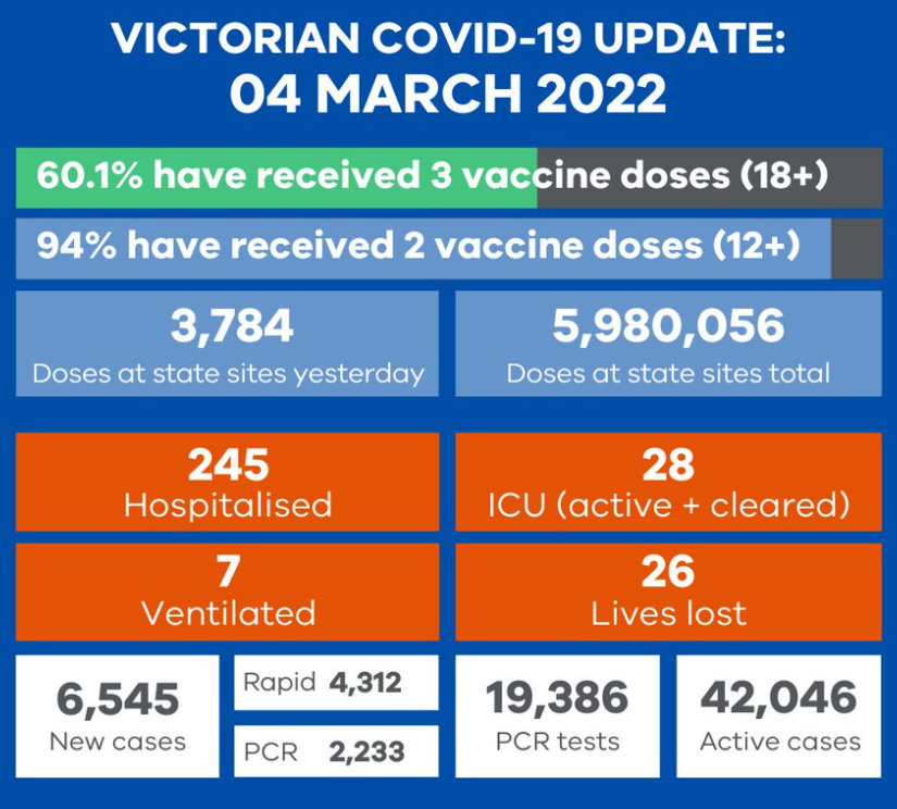 Victoria recorded 6,545 new cases and 26 deaths: