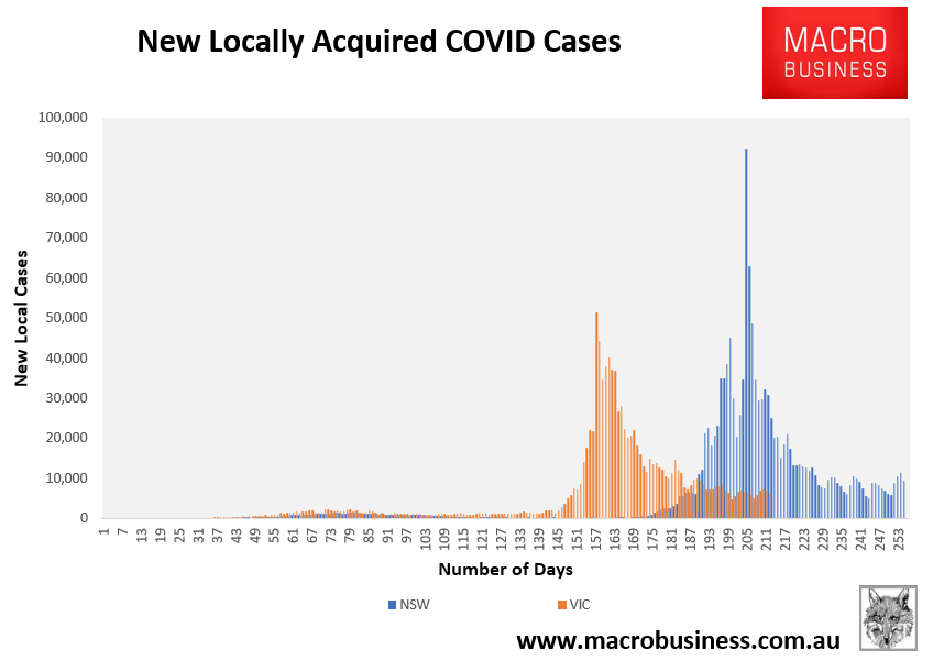 Daily cases, plotted since the beginning of last winter’s Delta wave are plotted below: