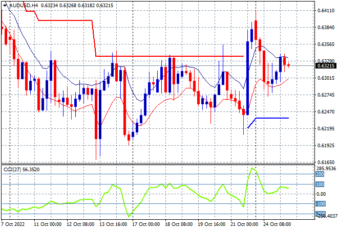 Australian stocks lagged somewhat but still put in a positive effort with the ASX200 closing more than 0.3% higher, almost creeping through the 6800 point level to close at 6798 points. The Australian dollar however has remained staunchly opposed to getting back to its Friday night position, still hovering around previous resistance at the 63.30 level: