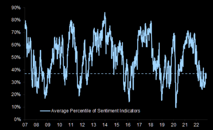 ….we would see sentiment swing to a massive plus. The chart shows the average percentile of 16 different sentiment indicators. Point being; we have not had a proper bear market squeeze (>30% a la GFC and dot.com crash) so far in 2022…