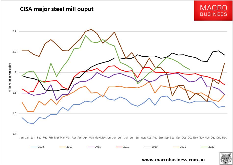 Chinese steel mills are losing even more money. They will destock while this lasts. In fact, they are: