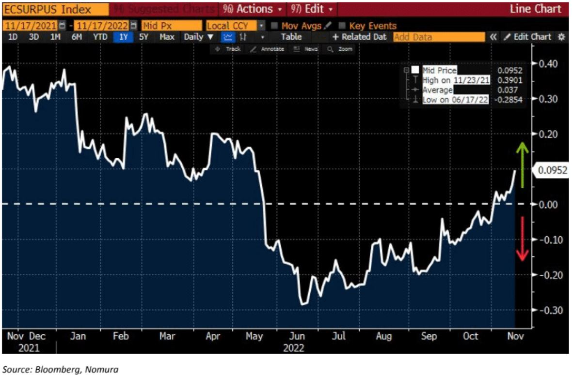 The resilience of the US economic data sits at the core of this renewed confidence in taking some shots again on “FCI tightening” trades, as we see the Bloomberg USEconomic Surprise index reaching highs last seen in mid-May ’22, as data continues to beat expectations on the margin—Labor, Retail / Wholesale and Surveys / Biz CycleIndicators bearing the concentration of the gains(while Housing, Industrials and Personal / Household sectors continue to drag)…”Good (data) is Bad (for assets)”…
