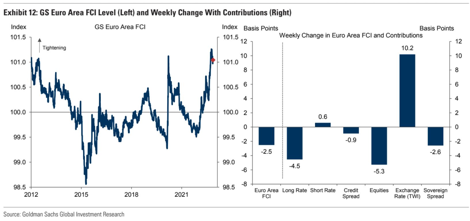 Goldman’s FCI is indicating considerable easing with the bear market rally. In fact, markets have erased the last 75bps hike.