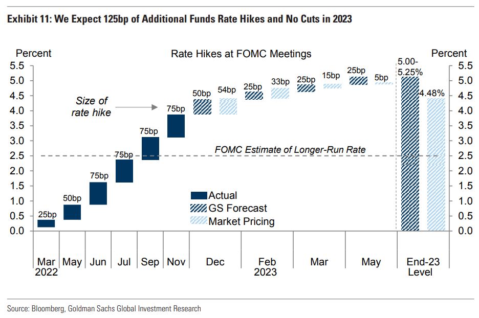 The US should narrowly avoid recession as core PCE inflation slows from 5% now to 3% in late 2023 with a ½pp rise in the unemployment rate. To keep growth below potential amidst stronger real income growth, we now see the Fed hiking another 125bp to a peak of 5-5.25%. We don’t expect cuts in 2023.