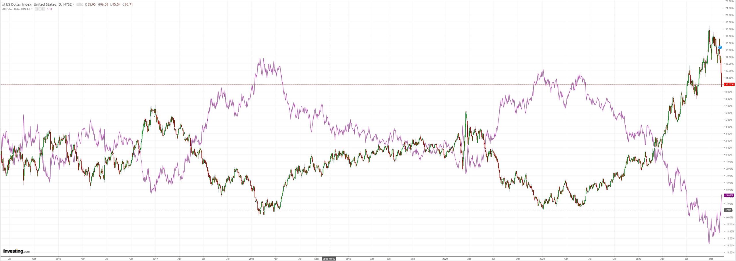 DXY stabilised last night after an impressive puke: