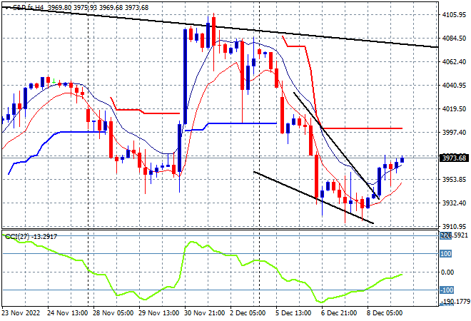 Eurostoxx and US futures have been able to climb higher from their overnight gains as we head into the London open with the S&P500 four hourly chart showing price action still under last week’s low and of course the very important 4000 point level, but looking slightly more promising: