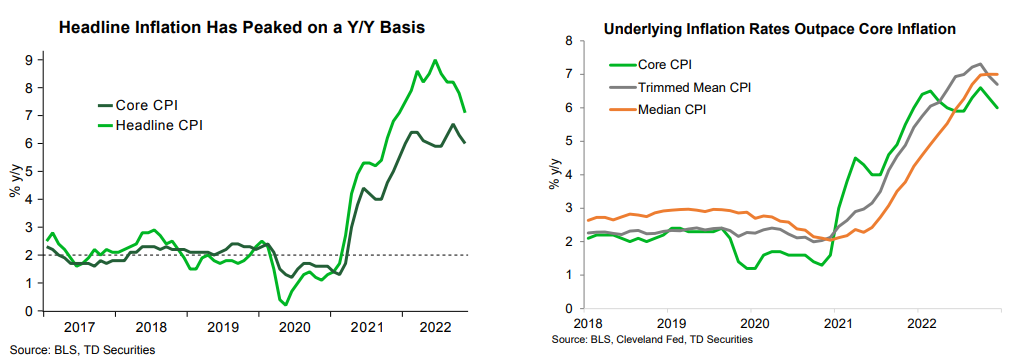 - Therefore, as long as labor markets remain tight, core services inflation will keep US inflation sticky at elevated levels and slow the pace of disinflation in 2023. These insights are reflected in our inflation forecasts, where both core CPI inflation and core PCE inflation will remain above target inflation levels by the end of 2023.