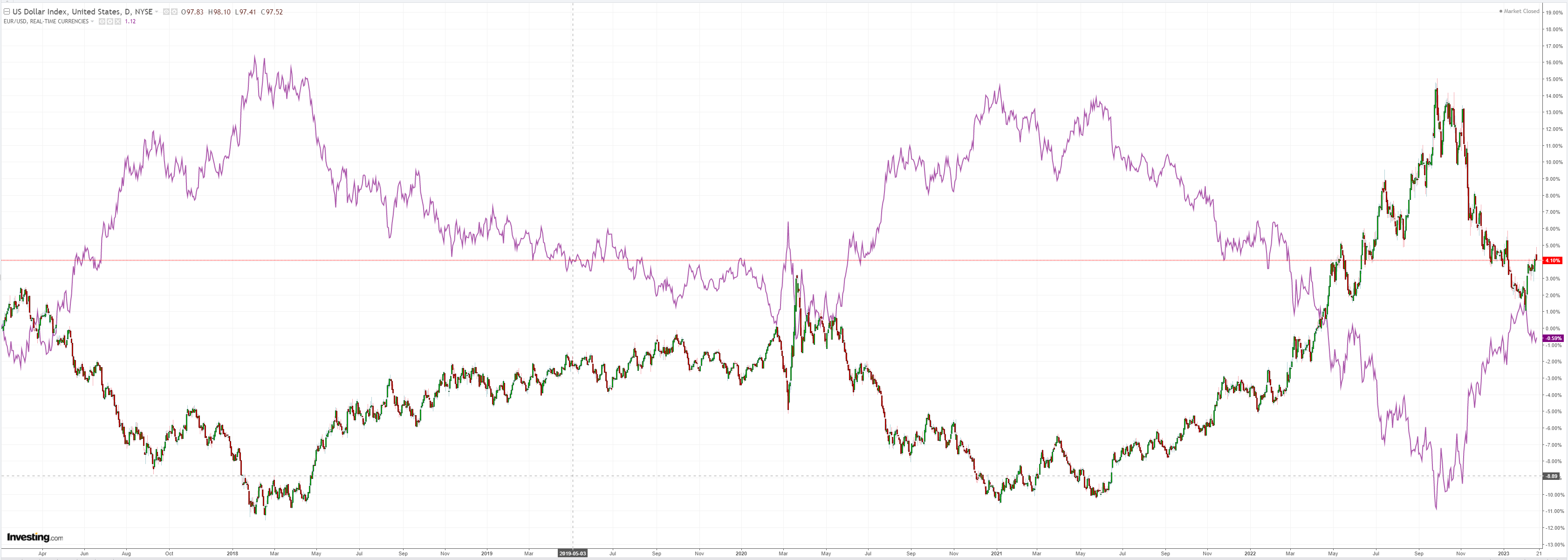 DXY tried and failed to break out. The pain trade is definitely higher now: