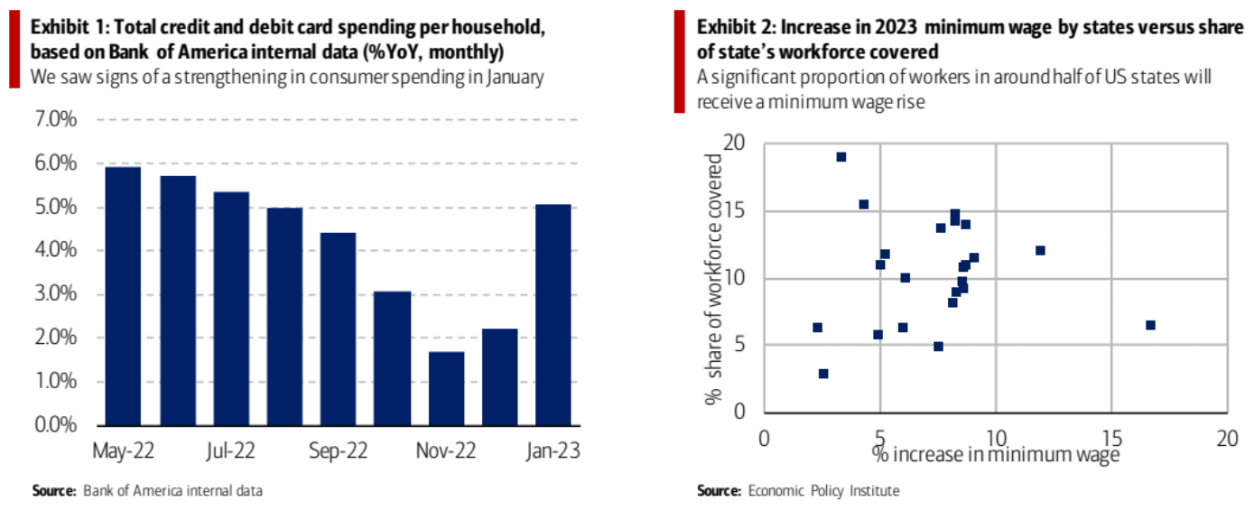 •This increase partly reflects the comparison with an Omicron-impacted January 2022, but we also think an increase in minimum wages and social security may be helping consumers, along with the stellar labor market.