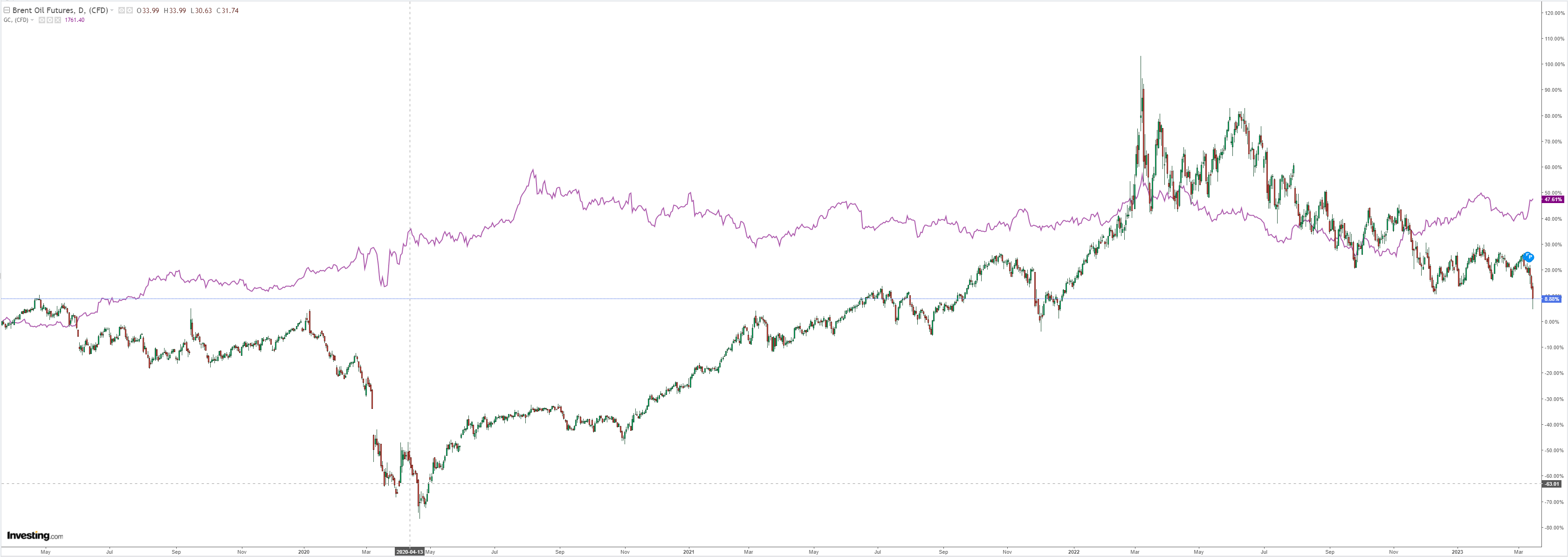 Gold held up. Oil broke. Big downside here: