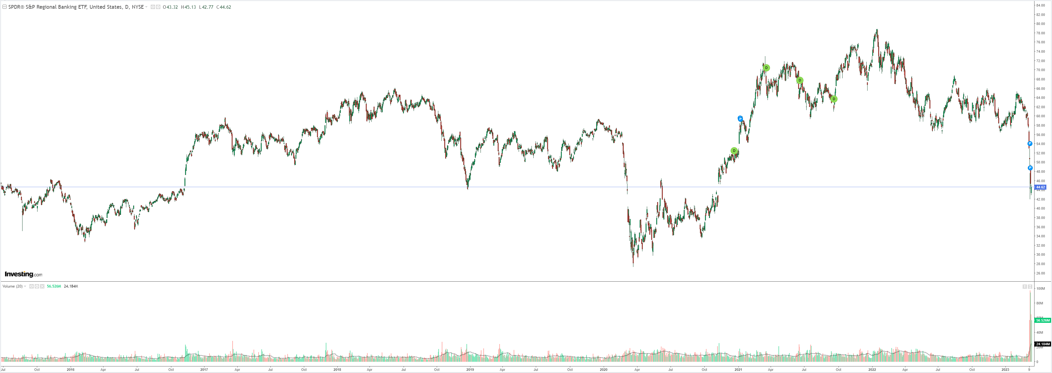 This looks increasingly like the credit event we’ve been waiting for. If so, there’ll be more casualties as counterparty risk rocks global banks. KRE still can’t get a bid: