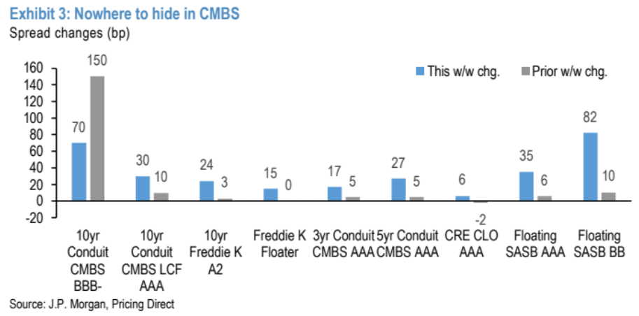 CMBS and CRE loans are in the gun in the US. JPM has more.