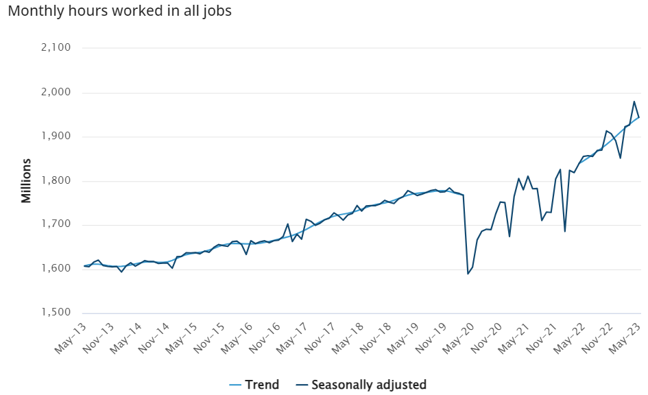 - monthly hours worked decreased to 1,944 million.