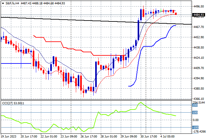 Eurostoxx futures are about 0.3% lower alongside S&P futures due to the poor mood here in Asia as traders return to Wall Street from their holiday. The S&P500 four hourly chart is still holding well above previous ATR resistance at the 4400 point level: