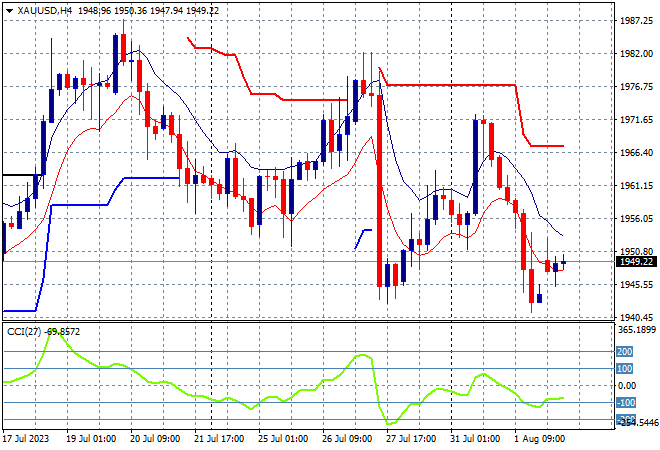 Oil prices are holding on to their recent gains as Brent crude remains above the $85USD per barrel level while gold is failing to clawback its recent losses, still floating around the $1950USD per ounce level and looking very weak here:
