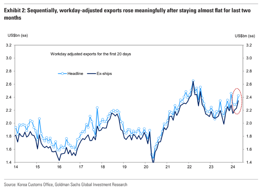 Korean March exports are showing a steady global industry lift is underway. Goldman: