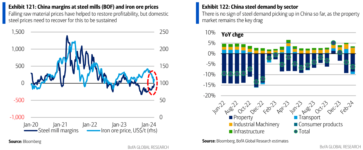 There’s not much to drive this on as still-ruined steel margins get wrecked by the dirt price rebound, and steel demand wilts. BofA: