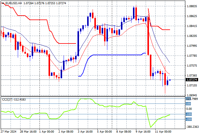 Currency markets are still in the thrall of King Dollar on the back of the US CPI print with further falls following the PPI print and the hold from the ECB overnight, with Euro pushed even further to almost cross below the 1.07 handle.