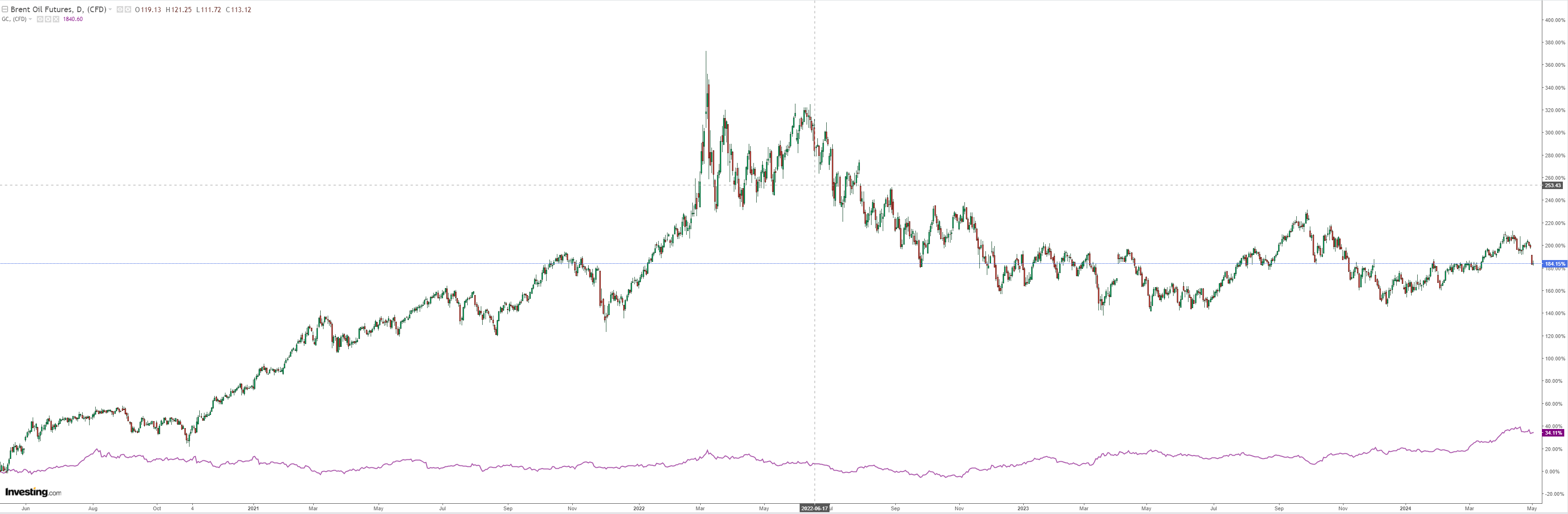 Oil has puked as Rafah gets underway, and global demand remains lacklustre.