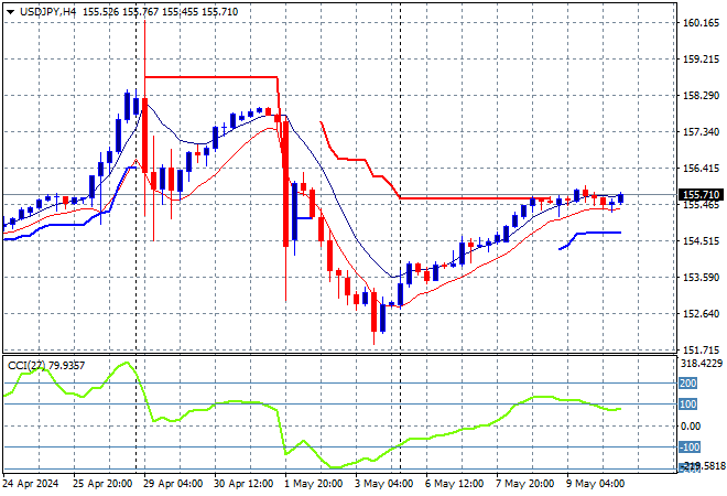 Mainland Chinese share markets are seeing a small lift with the Shanghai Composite up more than 0.2% while the Hang Seng Index is having a super strong session, currently up more than 2% at 18973 points. Meanwhile Japanese stock markets were able to make some small gains with the Nikkei 225 up more than 0.2% at 38150 points with the USDJPY pair still pausing here above the 155 level:
