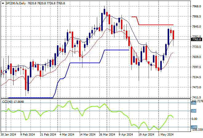 Australian stocks fell the sharpest with the ASX200 closing 1% lower as it failed to hold above the 7800 point barrier, finishing at 7721 points.