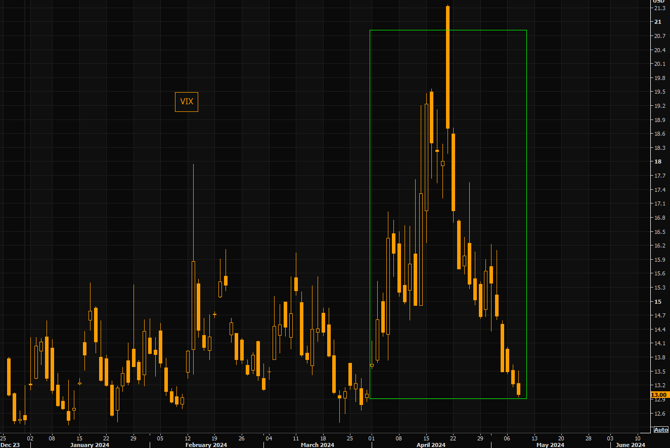 It took VIX 15 sessions to go from 13.5 to 21.3….and it took it 13 sessions to go all the way down to 13 again.