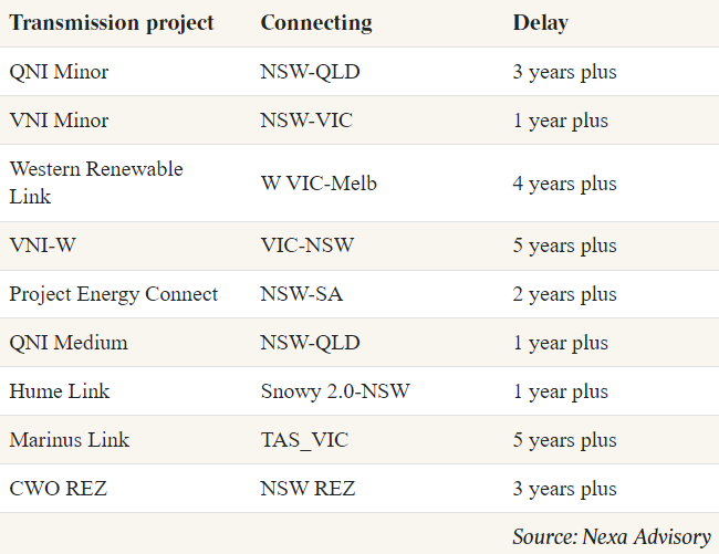 Bowen is also falling behind elsewhere. A survey by Nexa found that transmission line projects are years behind schedule, despite federal government vows to start work. This increases the danger of outages and price hikes as renewables fail to come on stream in time.