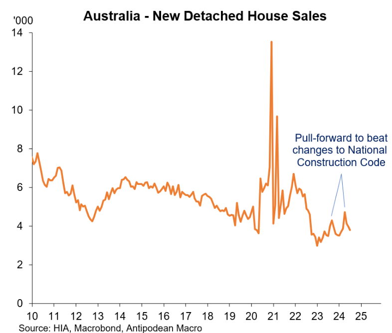 The slump in new home sales is tracking building approvals, which are equally soft: