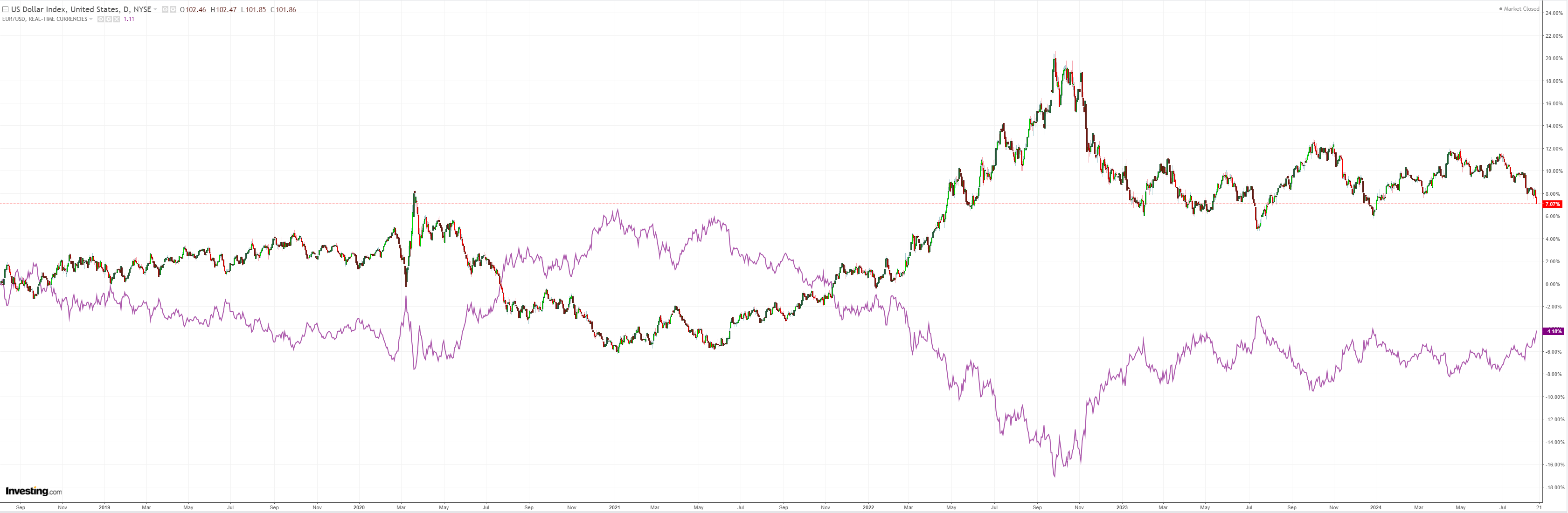 I am on board with a relatively shallow DXY weakness cycle as China and Europe fade away but right now there is further to go.