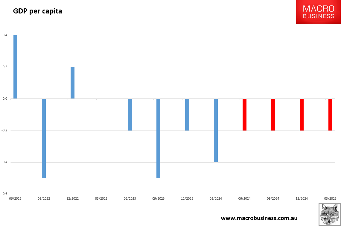 If tax cuts are not going to lift consumer volumes, and no imminent rate cuts will do so either, then we might ask is Albo going to deliver an entire term of per capita recession?