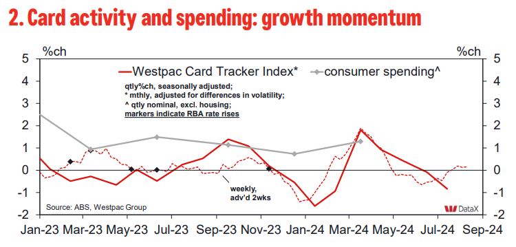 ― The early signs continue to suggest fiscal measures are having only a muted impact so far. That signal should become clearer as other indicators for the July month become available over the next few weeks. But as at mid-August our card tracker data implies consumers are mostly sitting on the extra tax cut cash rather than spending it.