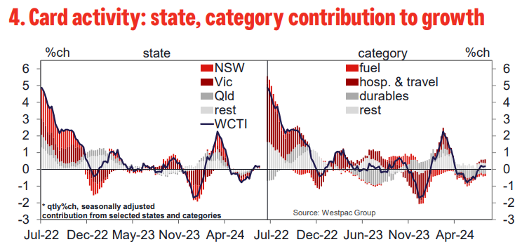 ― The category and state detail remains largely the same, the detail pointing to some improvement in discretionary segments but continuing to suggest the tax cut boost to activity so far been minimal. Indeed, rather than generating any strong outright gains, fiscal boosts may have just cushioned what would otherwise have been a further weakening.