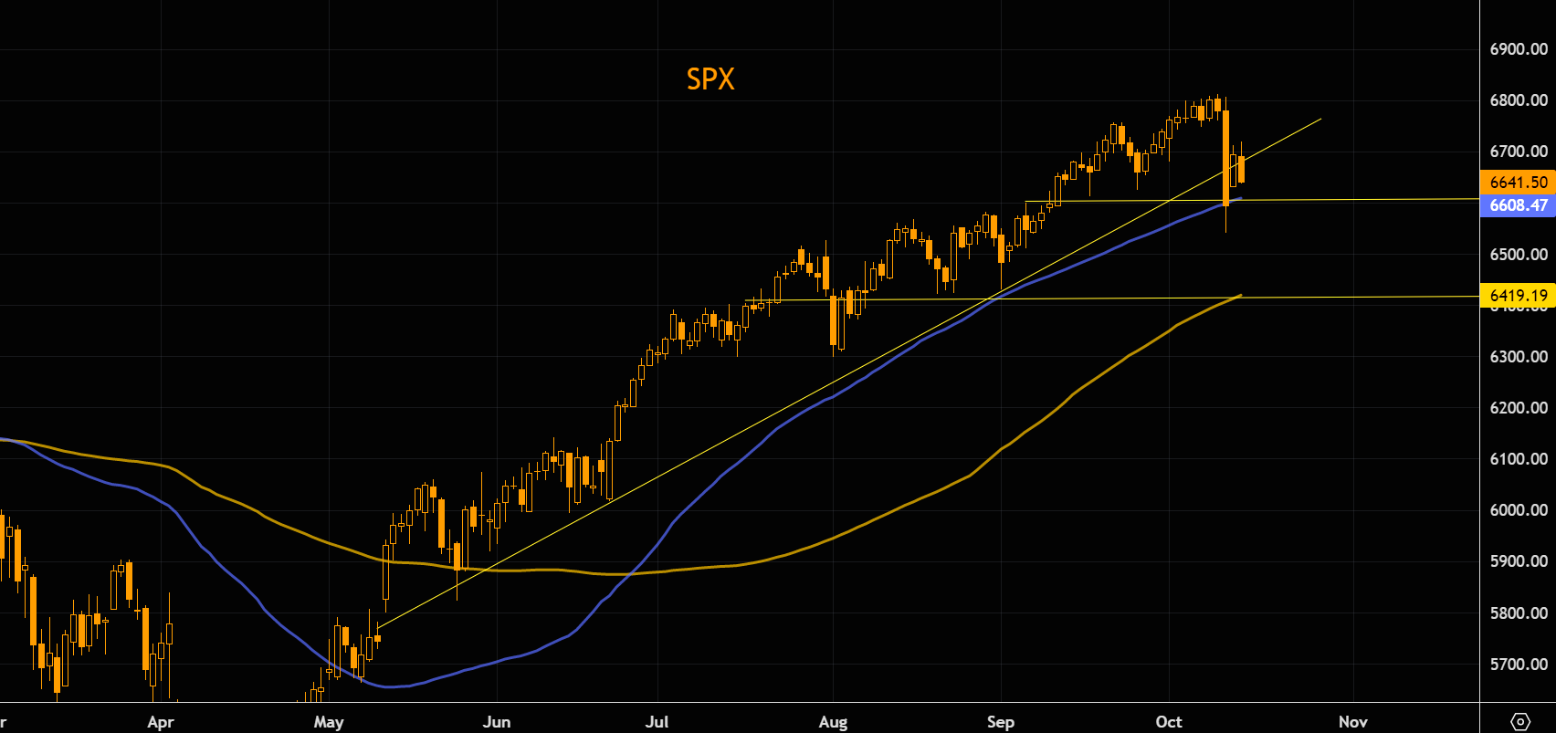 SPX futures basically reversing the bounce from yesterday. 6600 is the big short term level. The 50 day comes in right on that level. A close below, and 6500 is the next support, followed by the 100 day at 6400. A lot of damage was done on Friday, so this is a fragile market at the moment.