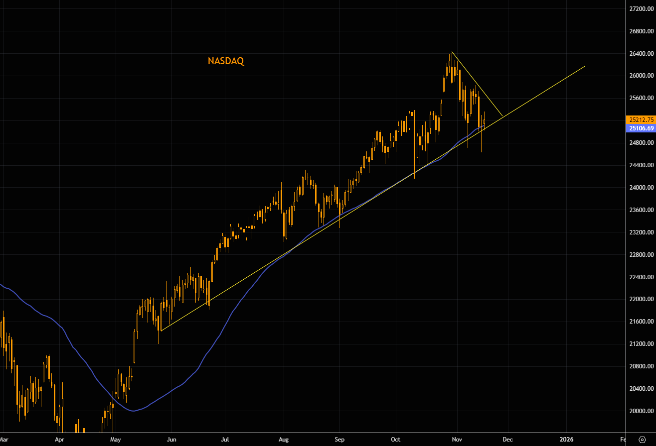 NASDAQ is trading right on the 50-day moving average. Friday saw a huge doji candle, indicating nobody is in control. Let’s see how this develops from here, but the longer-term trend line is a must-hold.