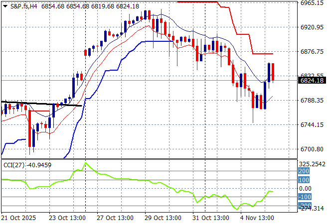 The four hourly chart shows how this retracement headed back to the 6800 point level before stabilising. Watch for short term resistance as the breakout point next to return back to the 6900 point level: