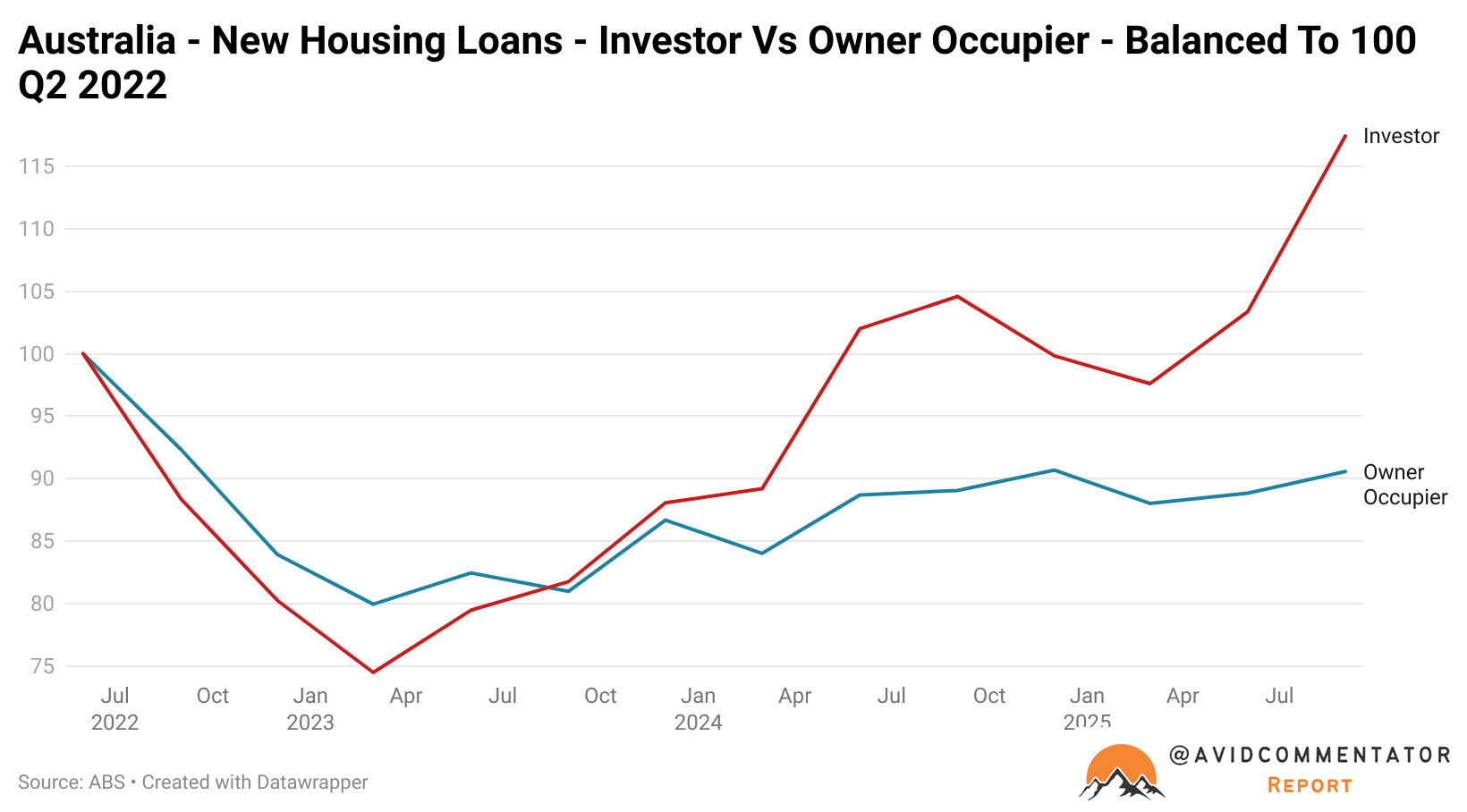 Since the election of the Albanese government in May 2022, new owner-occupier mortgage activity has remained depressed below that first snapshot under the Albanese government’s tenure.