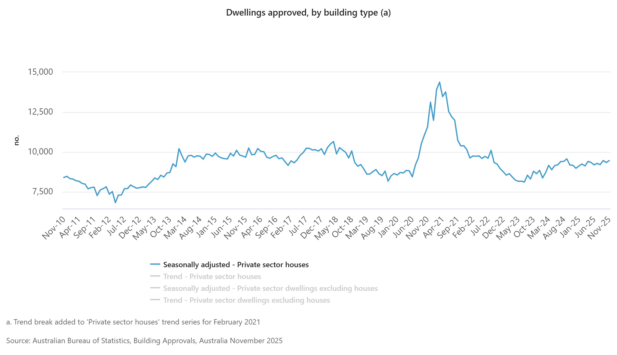 Meanwhile, approvals for detached houses were up by 1.3% for the month and 3.2% year-on-year, to 9,458 for the month of November.
