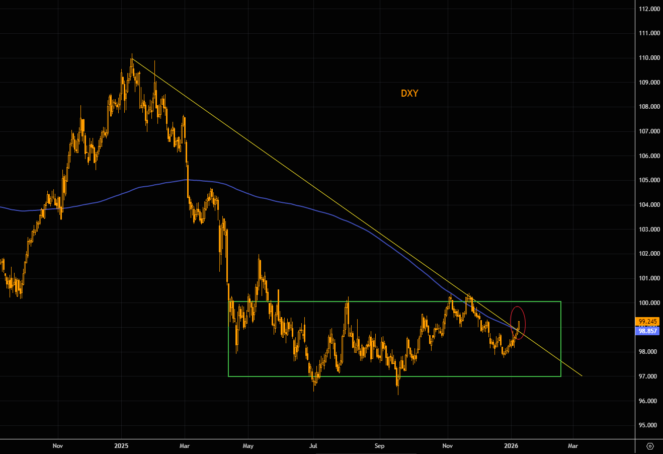 Charts from TME. DXY is breaking the downtrend.