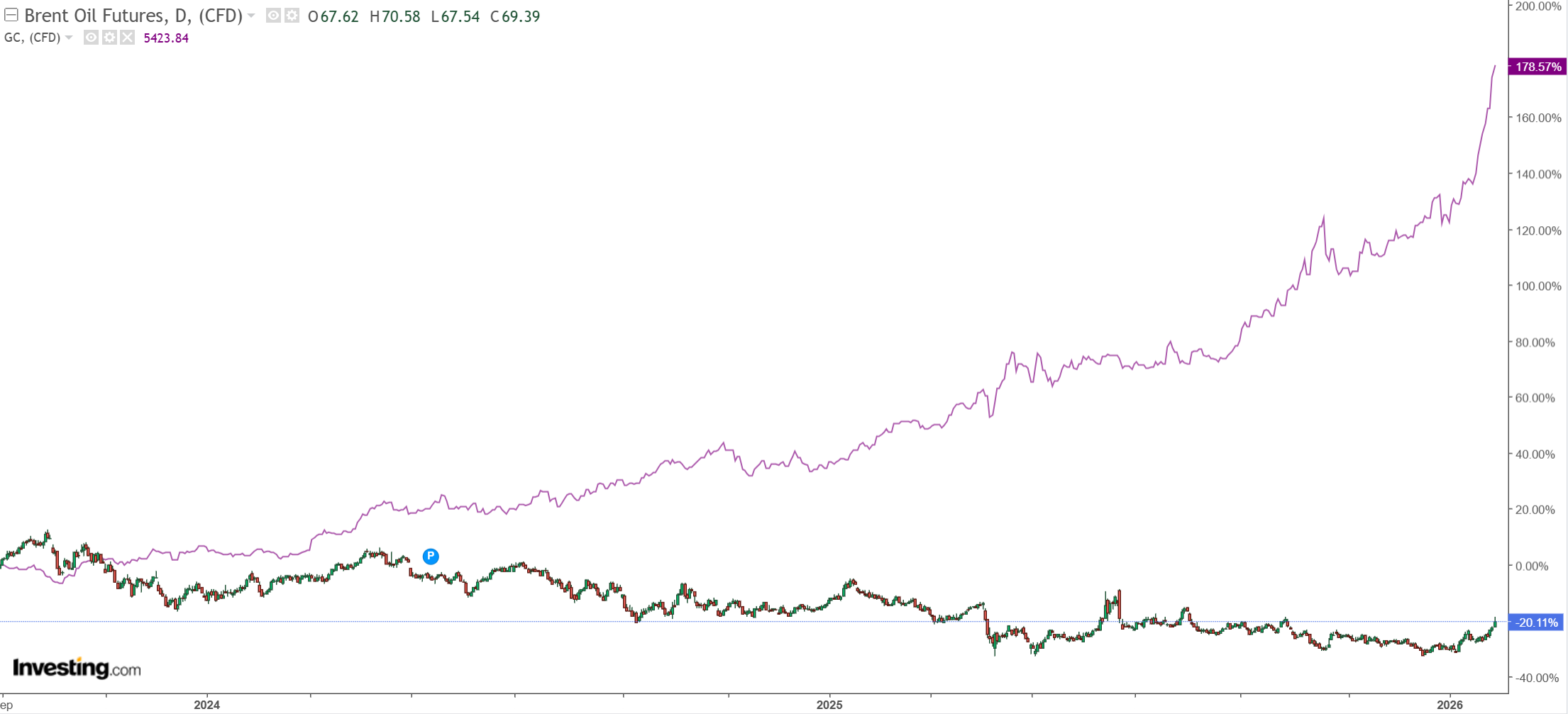 Can oil catch gold? Military preparations look more like surgical strikes than an all-out war, despite the rhetoric, so the TACO is probably right: oil won’t get far.
