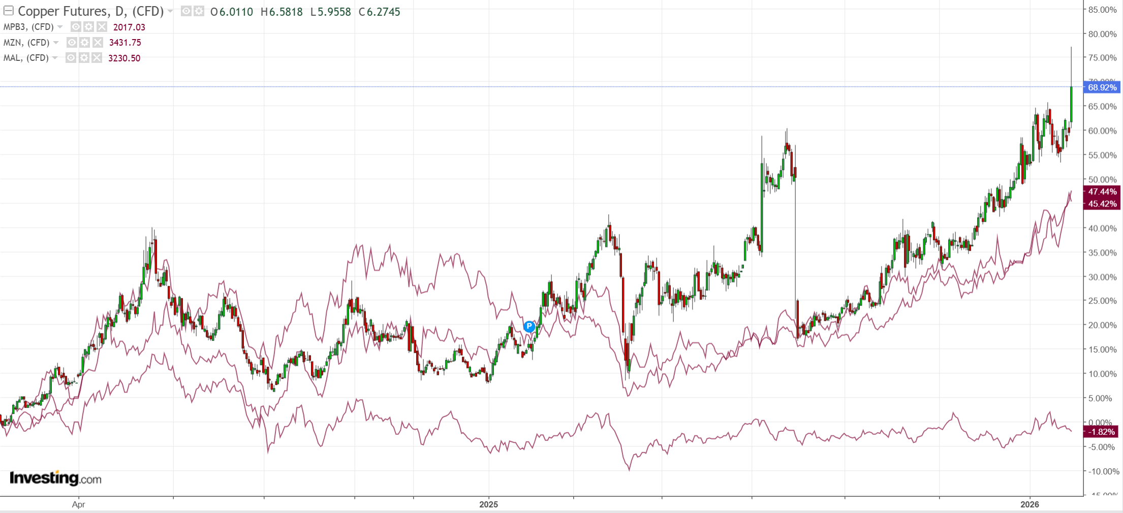 Copper has gone mad. The Chinese great ball of money is doing God’s work here.