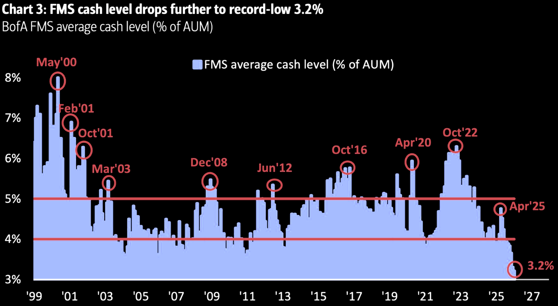 It’s a triple-bunger for risk on. The only problem is, nobody has any cash left in the tank.