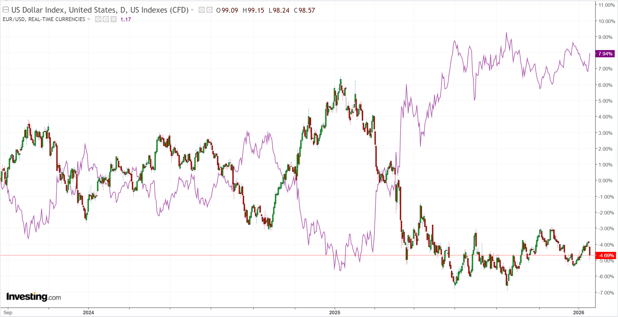 Mea culpa! DXY is not enjoying new Trump tariffs, while EUR is. Greenland TACO, anyone?