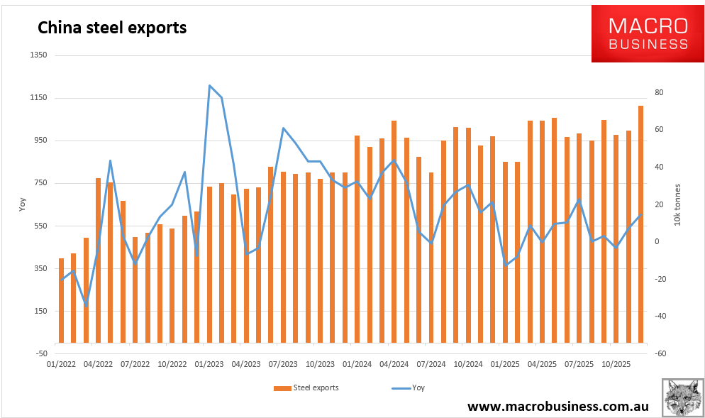 Steel exports were at a record, too, as some mills frontloaded ahead of the new export licensing system.